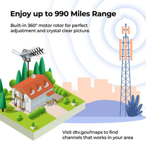 Our powerful antenna is designed to capture signals from up to 990 miles away, providing consistent reception even in rural or remote areas.