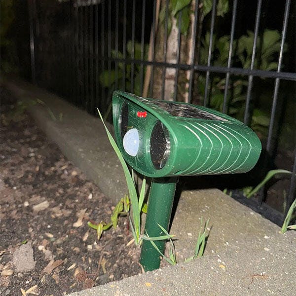 Motion-activated technology delivered 2.5s of ultrasonic waves, which are just enough to scare the animals away without hurting them.